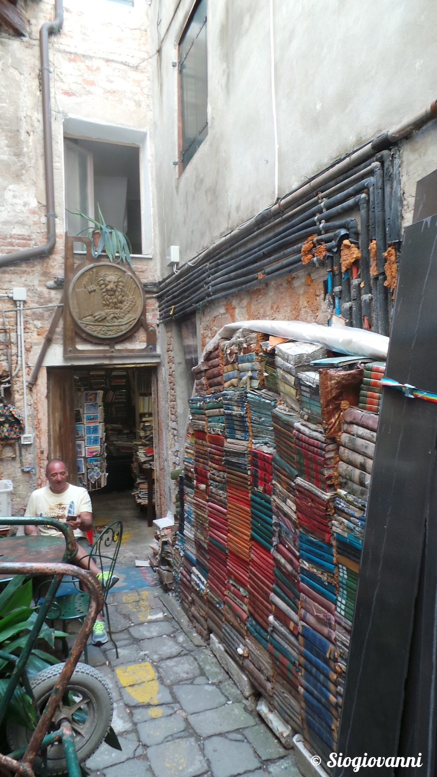 Nelle due corti si trovano ammassate lungo le pareti delle vecchie enciclopedie ormai sorpassate e destinate al macero ma che danno un’immagine caratteristica dell’ambiente.